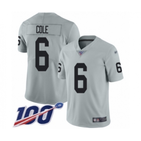 >Youth Oakland Raiders #6 A.J. Cole Limited Silver Inverted Legend 100th Season Football Jersey