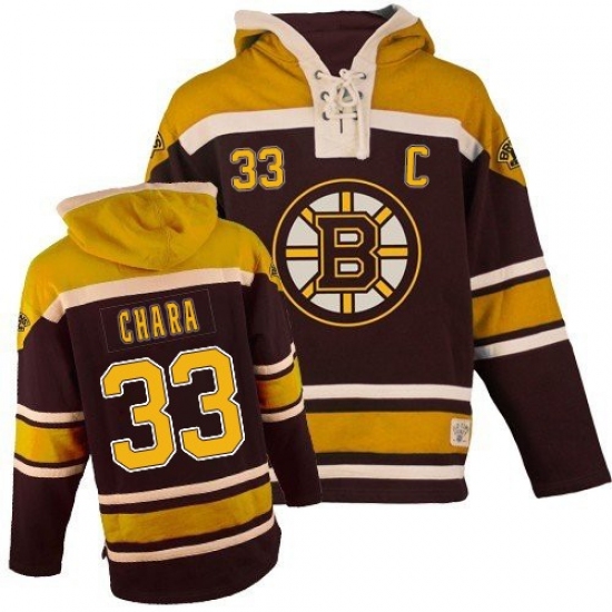 Youth Old Time Hockey Boston Bruins #33 Zdeno Chara Premier Black Sawyer Hooded Sweatshirt NHL Jersey
