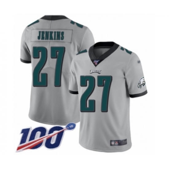 Youth Philadelphia Eagles #27 Malcolm Jenkins Limited Silver Inverted Legend 100th Season Football Jersey