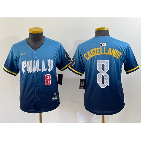 Youth Philadelphia Phillies #8 Nick Castellanos Number Blue 2024 City Connect Limited Stitched Jersey
