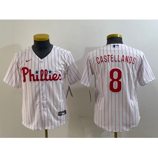 >Youth Philadelphia Phillies #8 Nick Castellanos White Cool Base Jersey