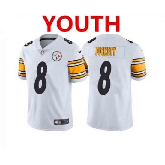 >Youth Pittsburgh Steelers #8 Kenny Pickett 2022 White Vapor Untouchable Limited Stitched Jersey