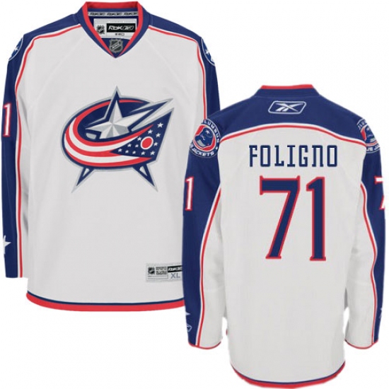 Home>NHL>Columbus Blue Jackets>Nick Foligno>Youth Reebok Columbus Blue Jackets #71 Nick Foligno Authentic White Away NHL Jersey