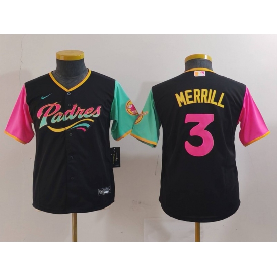 Youth San Diego Padres #3 Jackson Merrill Black Fashion Baseball Jersey