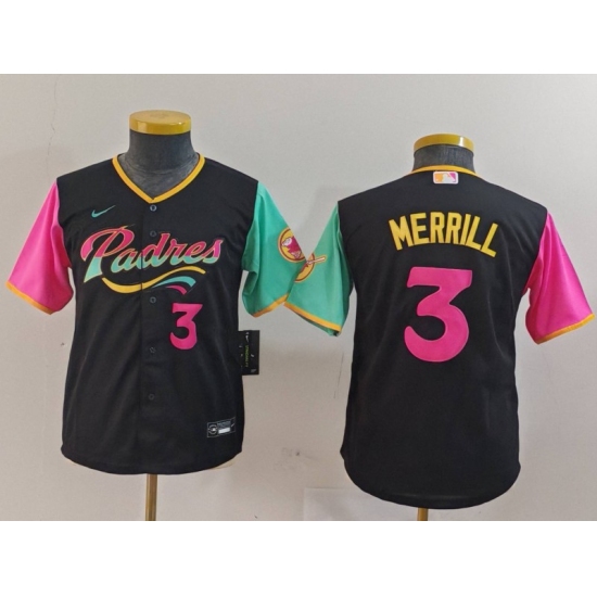 >Youth San Diego Padres #3 Jackson Merrill Black Player Number Fashion Baseball Jersey