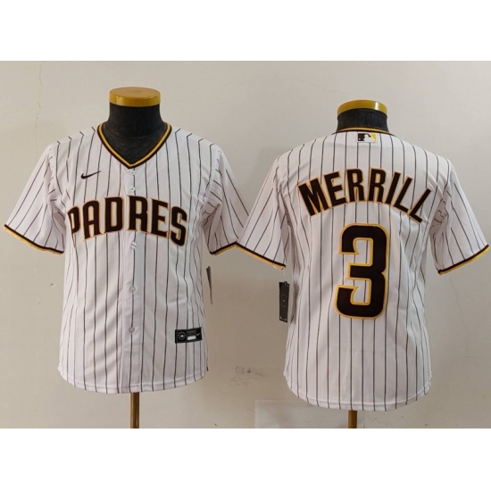 Youth San Diego Padres #3 Jackson Merrill White 2023 Cool Base Stitched Jersey