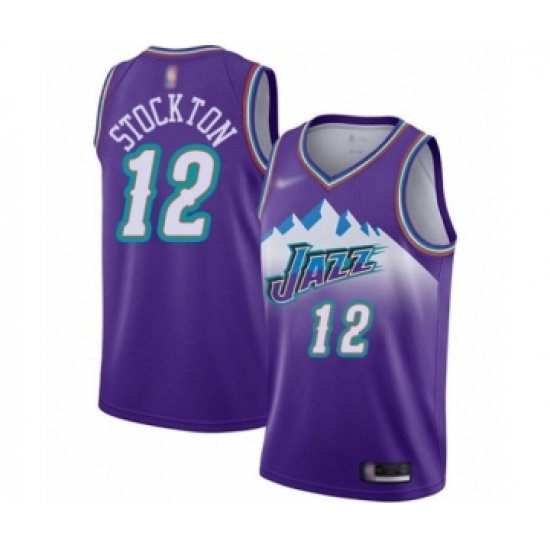 >Youth Utah Jazz #12 John Stockton Swingman Purple Hardwood Classics Basketball Jersey