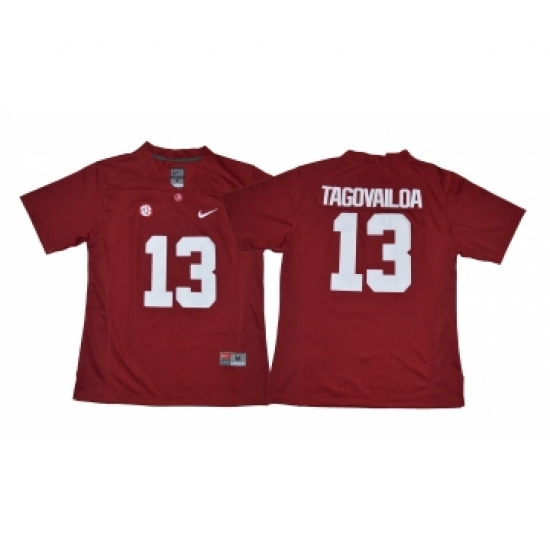 >Alabama Crimson Tide 13 Tua Tagovailoa Red Women With Diamond Logo College Football Jersey