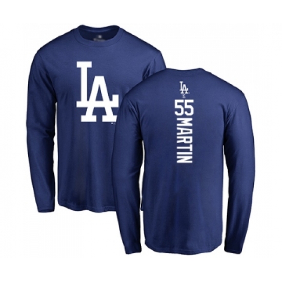 >Baseball Los Angeles Dodgers #55 Russell Martin Royal Blue Backer Long Sleeve T-Shirt