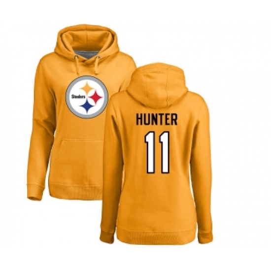 Football Women's Pittsburgh Steelers #11 Justin Hunter Gold Name & Number Logo Pullover Hoodie