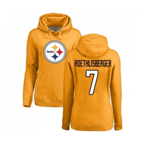 Football Women's Pittsburgh Steelers #7 Ben Roethlisberger Gold Name & Number Logo Pullover Hoodie