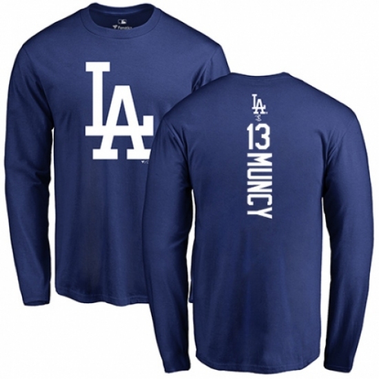 >MLB Nike Los Angeles Dodgers #13 Max Muncy Royal Blue Backer Long Sleeve T-Shirt