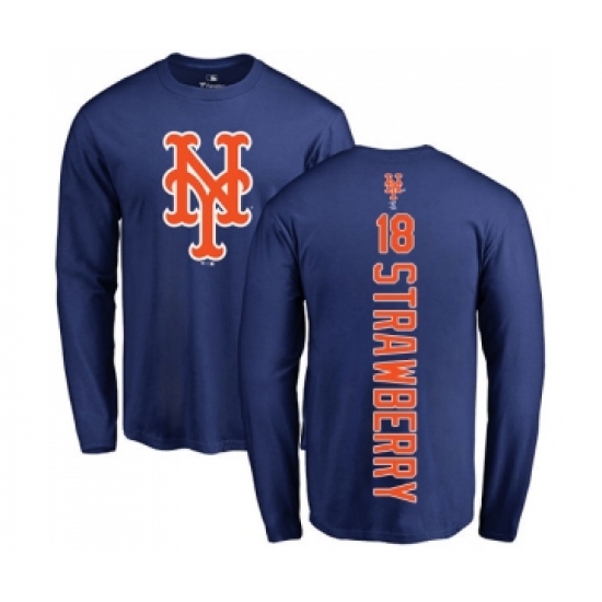 >MLB Nike New York Mets #18 Darryl Strawberry Royal Blue Backer Long Sleeve T-Shirt