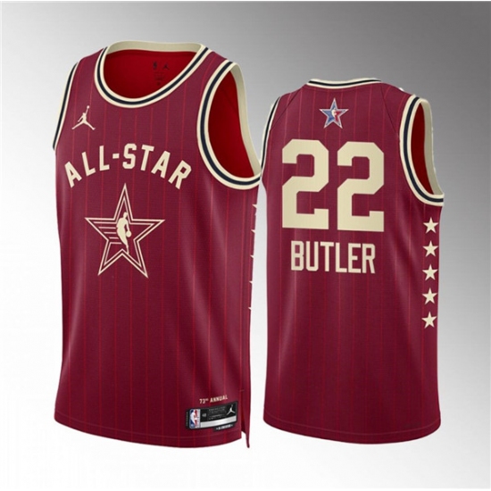 >Men's 2024 All-Star #22 Jimmy Butler Crimson Stitched Basketball Jersey