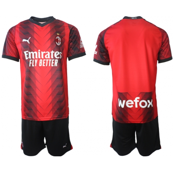 Kids AC Milan Blank 2023-24 Red Black Home Soccer Jersey