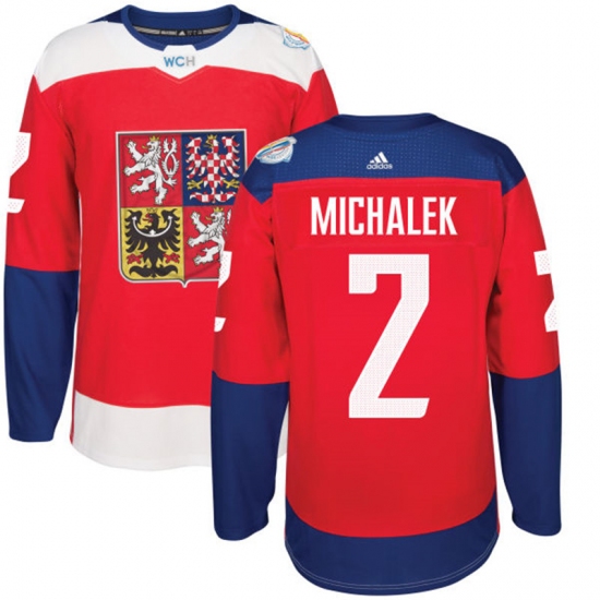 Men's Adidas Team Czech Republic #2 Zbynek Michalek Authentic Red Away 2016 World Cup of Hockey Jersey