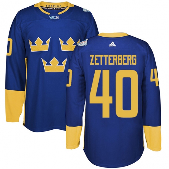 Home>NHL>Team Sweden>Henrik Zetterberg>Men's Adidas Team Sweden #40 Henrik Zetterberg Premier Royal Blue Away 2016 World Cup of Hockey Jersey