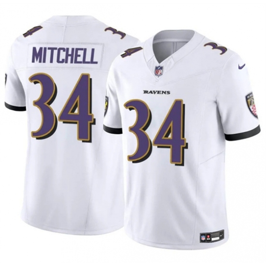 Men's Baltimore Ravens #34 Keaton Mitchell White 2025 F.U.S.E. Vapor Limited Football Jersey