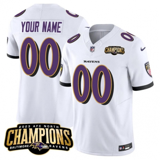 >Men's Baltimore Ravens Active Player Custom White 2023 F.U.S.E. AFC North Champions Vapor Limited Football Stitched Jersey