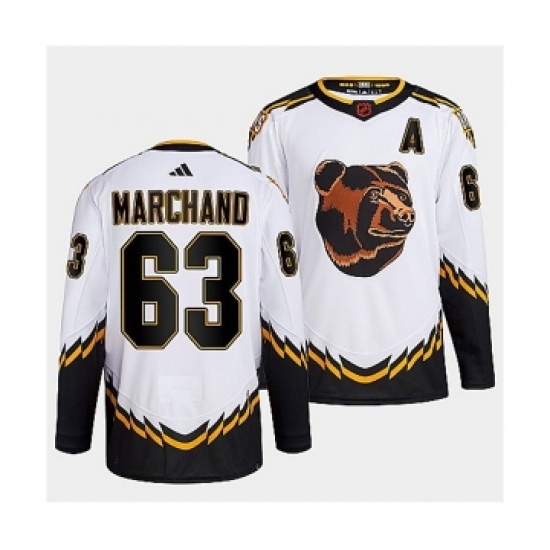 Men's Boston Bruins #63 Brad Marchand 2022 White Reverse Retro Stitched Jersey