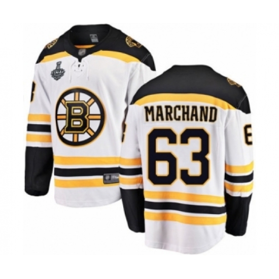 Men's Boston Bruins #63 Brad Marchand Authentic White Away Fanatics Branded Breakaway 2019 Stanley Cup Final Bound Hockey Jersey
