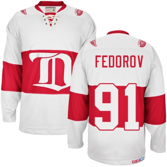 Men's CCM Detroit Red Wings #91 Sergei Fedorov Premier White Winter Classic Throwback NHL Jersey