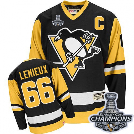 Men's CCM Pittsburgh Penguins #66 Mario Lemieux Premier Black Throwback 2017 Stanley Cup Champions NHL Jersey