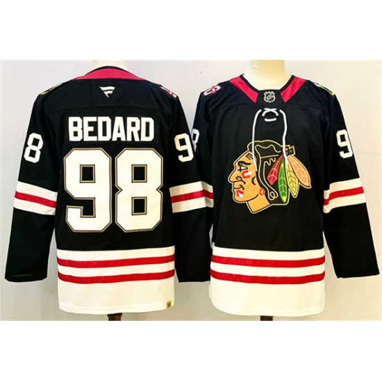 Men's Chicago Blackhawks #98 Connor Bedard Black With A Stitched Hockey Jersey
