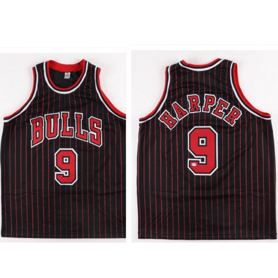 Men's Chicago Bulls #9 Ron Harper Black Pinstriped Jersey