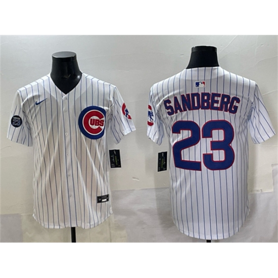 Men's Chicago Cubs #23 Ryne Sandberg White Throwback Stitched Baseball Jersey