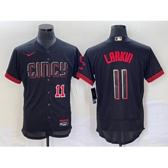 >Men's Cincinnati Reds #11 Barry Larkin Number Black 2023 City Connect Flex Base Stitched Jersey 2