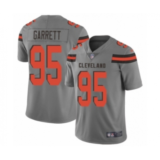 >Men's Cleveland Browns #95 Myles Garrett Limited Gray Inverted Legend Football Jersey
