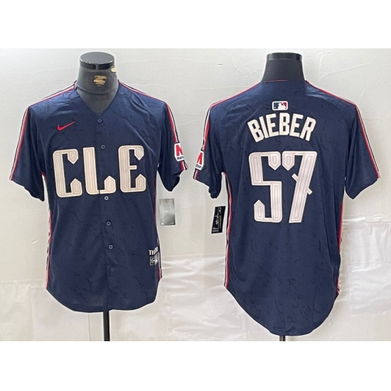 >Men's Cleveland Guardians #57 Shane Bieber Navy 2024 City Connect Limited Stitched Jersey