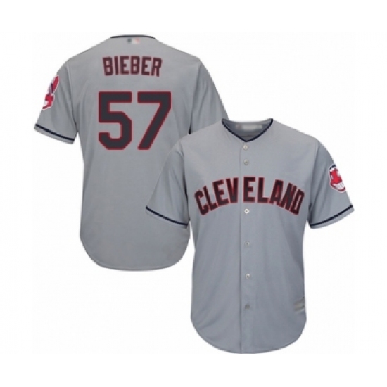 Men's Cleveland Indians #57 Shane Bieber Replica Grey Road Cool Base Baseball Jersey