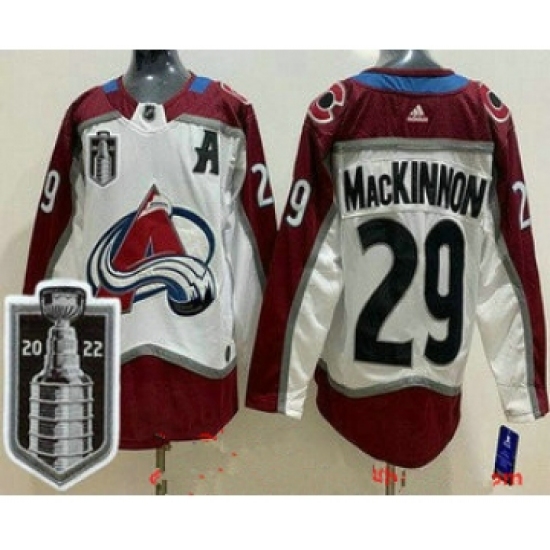 Men's Colorado Avalanche #29 Nathan MacKinnon White 2022 Stanley Cup Stitched Jersey