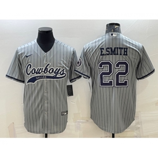 Men's Dallas Cowboys #22 Emmitt Smith Grey With Patch Cool Base Stitched Baseball Jersey