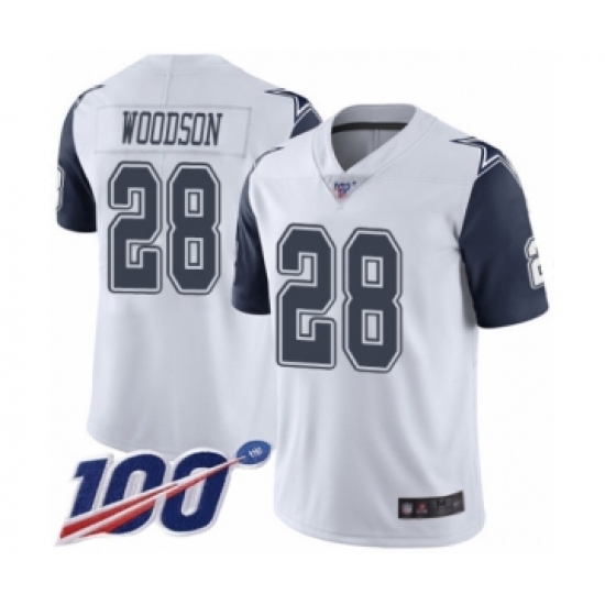 Men's Dallas Cowboys #28 Darren Woodson Limited White Rush Vapor Untouchable 100th Season Football Jersey