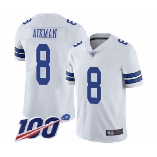 Men's Dallas Cowboys #8 Troy Aikman White Vapor Untouchable Limited Player 100th Season Football Jersey