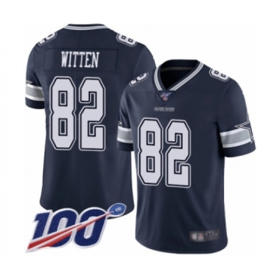 >Men's Dallas Cowboys #82 Jason Witten Navy Blue Team Color Vapor Untouchable Limited Player 100th Season Football Jersey