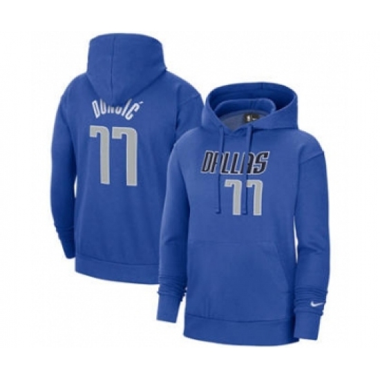 Men's Dallas Mavericks #77 Luka Doncic 2021 Blue Pullover Basketball Hoodie