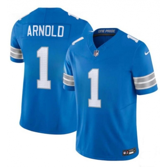 >Men's Detroit Lions #1 Terrion Arnold New Blue 2024 Draft F.U.S.E. Vapor Limited Football Stitched Jersey