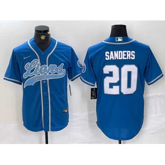 Men's Detroit Lions #20 Barry Sanders Blue With Cool Base Stitched Baseball Jersey