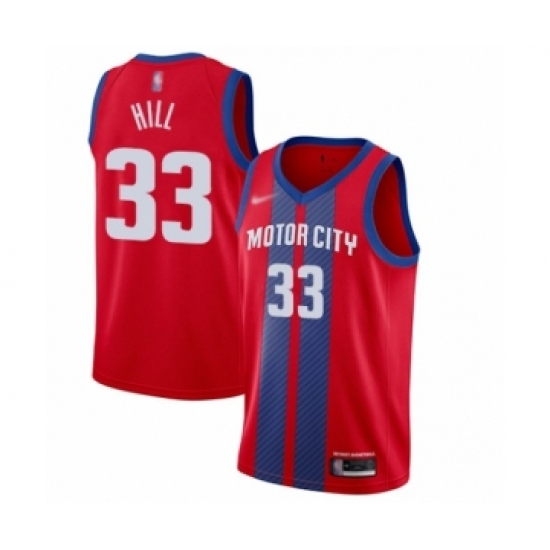 >Men's Detroit Pistons #33 Grant Hill Swingman Red Basketball Jersey - 2019 20 City Edition