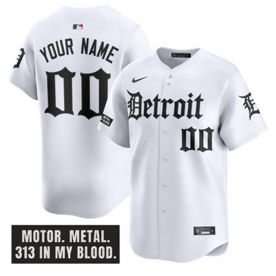 Men's Detroit Tigers ACTIVE PLAYER Custom White 'Motor Gothic Edition' Vapor Premier Limited Stitched Baseball Jersey
