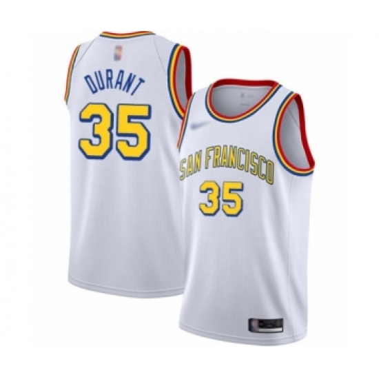 >Men's Golden State Warriors #35 Kevin Durant Authentic White Hardwood Classics Basketball Jersey - San Francisco Classic Edition