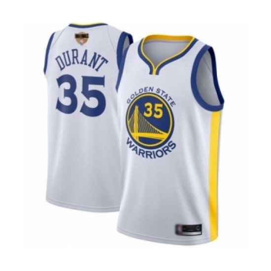 >Men's Golden State Warriors #35 Kevin Durant Swingman White 2019 Basketball Finals Bound Basketball Jersey - Association Edition