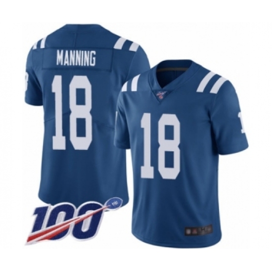 Men's Indianapolis Colts #18 Peyton Manning Royal Blue Team Color Vapor Untouchable Limited Player 100th Season Football Jersey