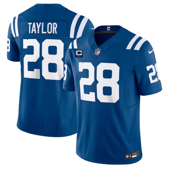 >Men's Indianapolis Colts #28 Jonathan Taylor Blue 2024 F.U.S.E. With 2-Star C Vapor Limited Stitched Football Jersey