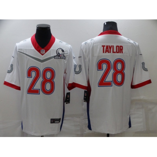 >Men's Indianapolis Colts #28 Jonathan Taylor White Royal 2022 NFC Pro Bowl Limited Player Jersey