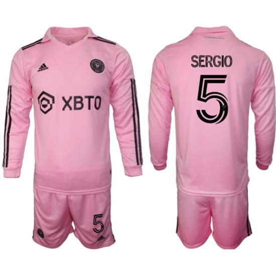Men's Inter Miami CF #5 sergio 2023-24 Pink Home Soccer Jersey Suit